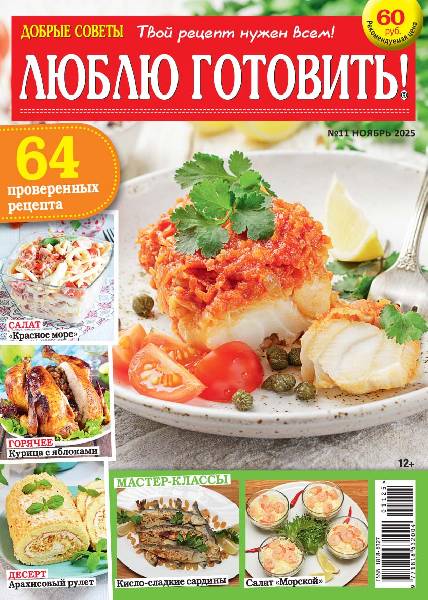 «Добрые советы. Люблю готовить!» — журнал о вкусной еде, не похожий на другие кулинарные издания. Все опубликованные в нем рецепты присланы в редакцию самими читателями. Каждый рецепт прошел конкурсный отбор, а его автор получил денежный приз. Ежемесячно на страницах журнала — рецепты коронных блюд, которые многократно проверены опытными хозяйками и которые можно смело брать в свою коллекцию рецептов тем, кто любит баловать родных и удивлять гостей. С помощью журнала легко составить меню полноценного обеда или приготовить ужин на скорую руку, соблюдать пост или устраивать пышные застолья. А еще — в совершенстве овладеть кулинарным искусством под руководством шеф-повара, который дает в каждом номере несколько мастер-классов! И, конечно, неоспоримые плюсы журнала «Добрые советы. Люблю готовить!»: удобный маленький формат и невысокая цена.