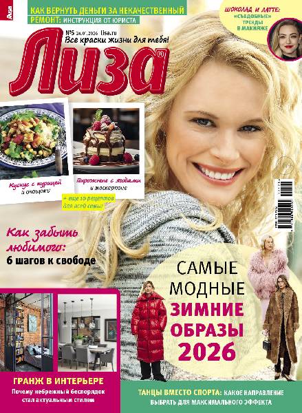 Самый популярный в России еженедельный журнал для молодых женщин «Лиза» стал еще интереснее, еще привлекательнее для читательниц. Теперь больше знаменитостей на страницах любимого журнала! Фитнес со звездой и звездный макияж, уроки стиля и самые горячие новости из жизни кумиров. А еще — модный шопинг, актуальная мода, новинки косметики и великолепные идеи для дома. Романтические истории о настоящей любви и рассказы читательниц о разных жизненных ситуациях. Аспекты психологии, секреты успешных отношений с окружающими и искусство сохранения любви. Консультации экспертов в области медицины и богатства природной аптеки. Лучшие кулинарные рецепты из редакционной коллекции. Увлекательные путешествия по России и всему миру.